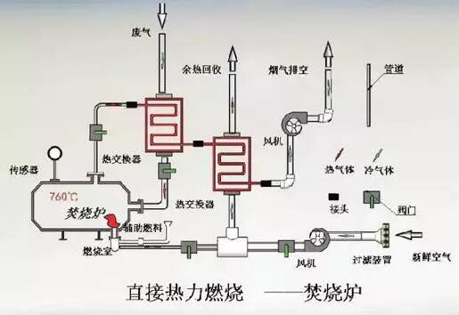 間壁式熱氧化是用列管或板式間壁換熱器來捕獲凈化排放氣的熱量,它可以回收40%-70%的熱能,并用回收的熱量來預熱進入氧化系統的有機廢氣。預熱后的廢氣再通過火焰來達到氧化溫度,進行凈化,間壁換熱的缺點是熱回收效率不高。