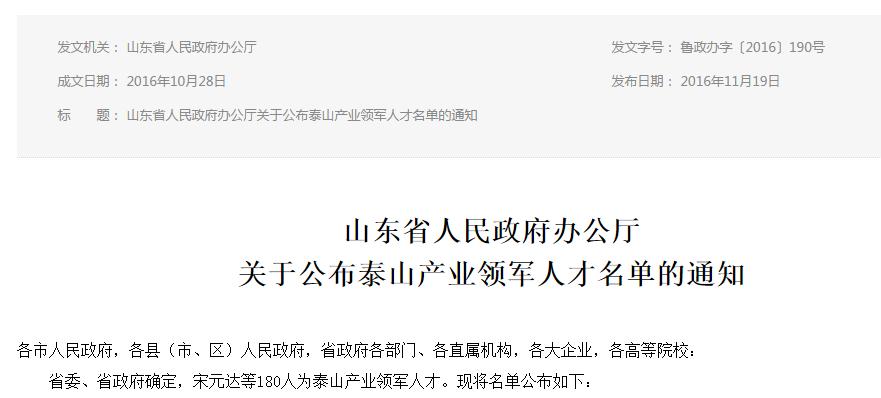9. 10月底,經(jīng)過組織動員、初步評選、專家評審、現(xiàn)場考察、公示公告等嚴(yán)格程序,公司申報投資建設(shè)項(xiàng)目綜合服務(wù)產(chǎn)業(yè)鏈項(xiàng)目成功入選“2016年度泰山產(chǎn)業(yè)領(lǐng)軍人才工程”,董事長郭培勛入選“泰山產(chǎn)業(yè)領(lǐng)軍人才”。