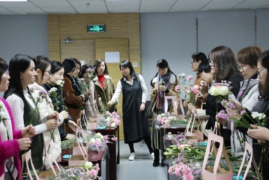 活動(dòng)中,女職工們積極參加。花藝培訓(xùn)老師首先對花藝?yán)碚撝R(shí)進(jìn)行了簡單介紹,包括插花的特點(diǎn),有時(shí)間性,生命性,時(shí)尚性,裝飾性等。